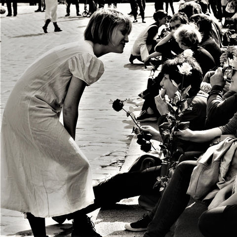These performances, are visual dance-theater images staging SISTERHOOD, and take place in iconic public spaces the group of women’s city. The symbol they carry is that of women solidarity, empowerment, with a feminine sensibility, made of the uniqueness of each woman composing the ensemble.